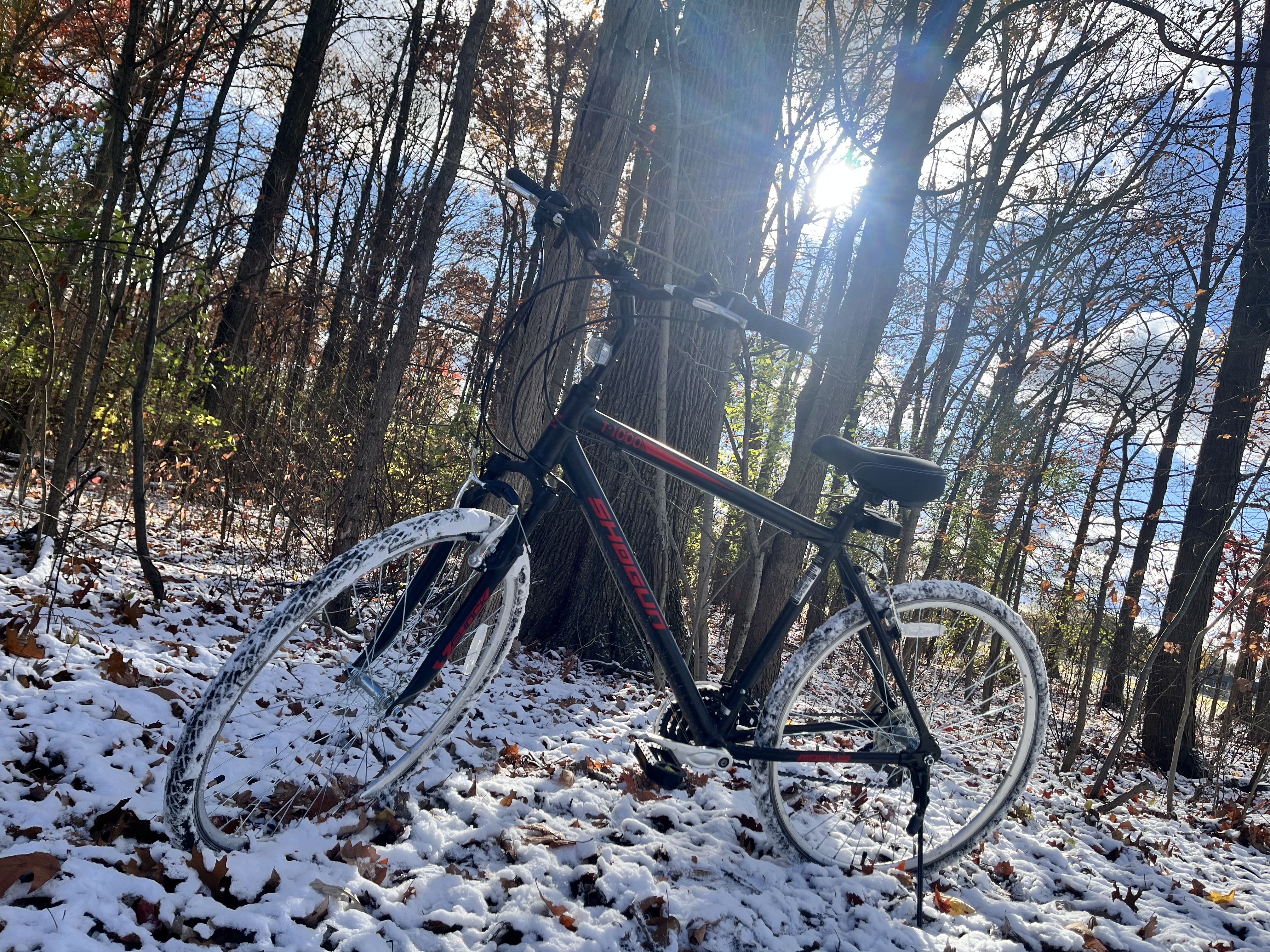 So in the morning i check outside, and there is snow covering the ground, amazing sight at first but i realize if there is ice im screwed because i bike to school. Luckily there was none, and i was all good.